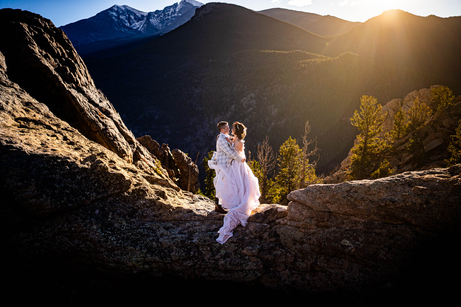 Typically we try to photograph the most important photos during the last 2 hours of daylight. Mornings are also great! The mid-day sun here in Estes Park and RMNP is really harsh and creates shadows that are unflattering for skin tones. We can make it work with some lighting techniques, and it’s really beautiful, however it’s best to try to avoid.
